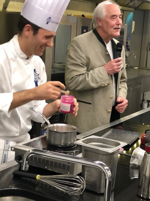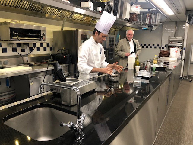 Le 17 novembre dernier à l’Institut Le Cordon Bleu, nous avons reçu le Professeur Hervé This, chercheur et chimiste a l’INRA. Il est le cocréateur de la science nommée « gastronomie moléculaire » et de la technique culinaire nommée « cuisine moléculaire « ; il est le créateur de la cuisine de synthèse surnommée « cuisine note à note Après une conférence dynamique avec démonstration technique, le diner fut un menu dégustation composé d’une farandole de plats avec certains exemples de cuisine moléculaire comme l’œuf 64*C parfait et l’huitre en chaud froid a la citronnelle…